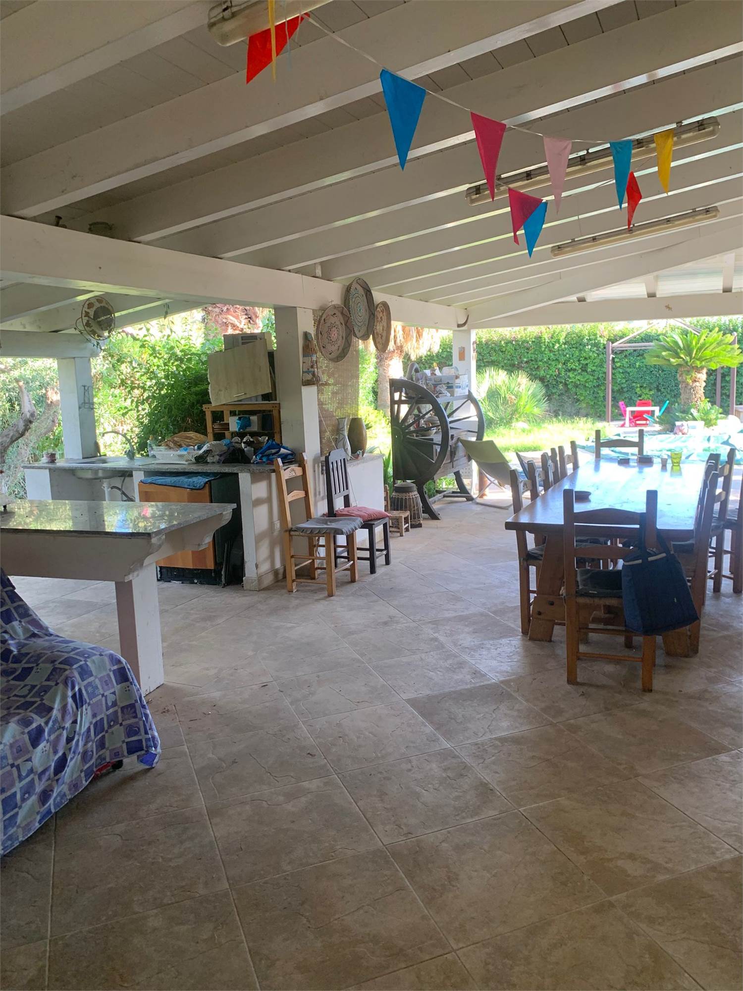 Quartu, in via Michelangelo zona, su lotto di 600 mq, a pochi metri dal mare, villa indipendente composta da ingresso con soggiorno/sala e cucina, tre camere da letto ampie e luminose, bagno e doppio ripostiglio. Ampia veranda attrezzata con barbecue e forno che si affaccia su giardino di 500 mq circa su quattro lati con piscina e capanno. Terrazza sovrastante panoramica con pannello fotovoltaico 6 kw con accumulo di 10 kw di recente installazione. Ottime condizioni generali. Terreno limitrofo di proprietà di 1.000,00 mq circa con pozzo. Zona tranquilla e riservata. Sei posti auto.